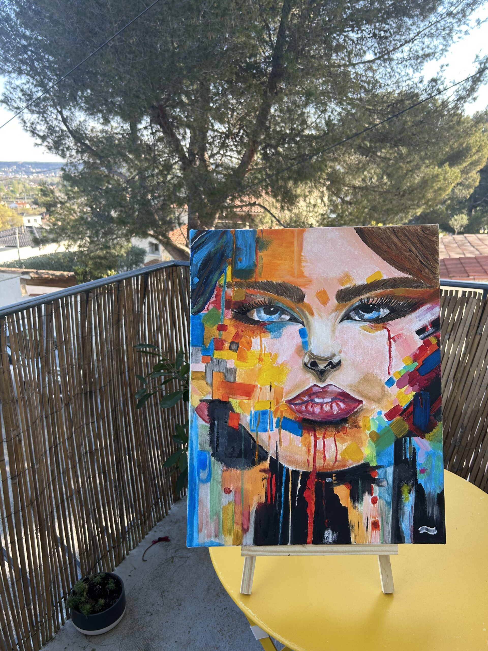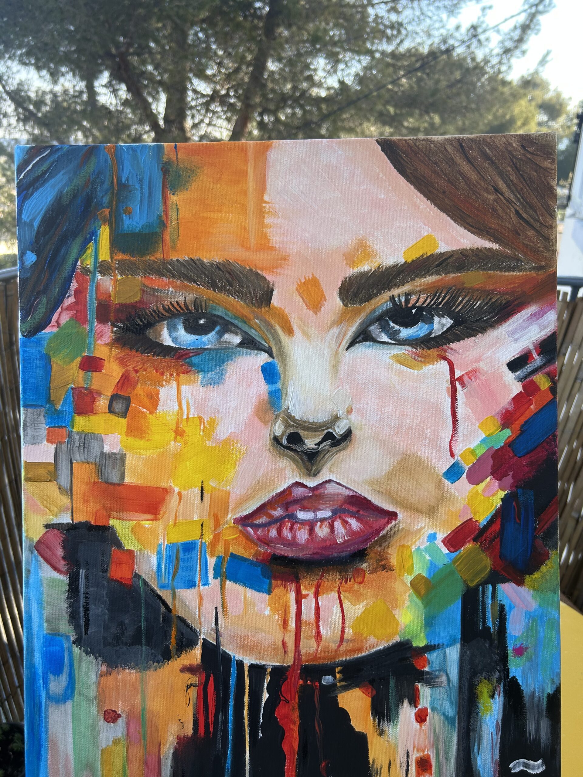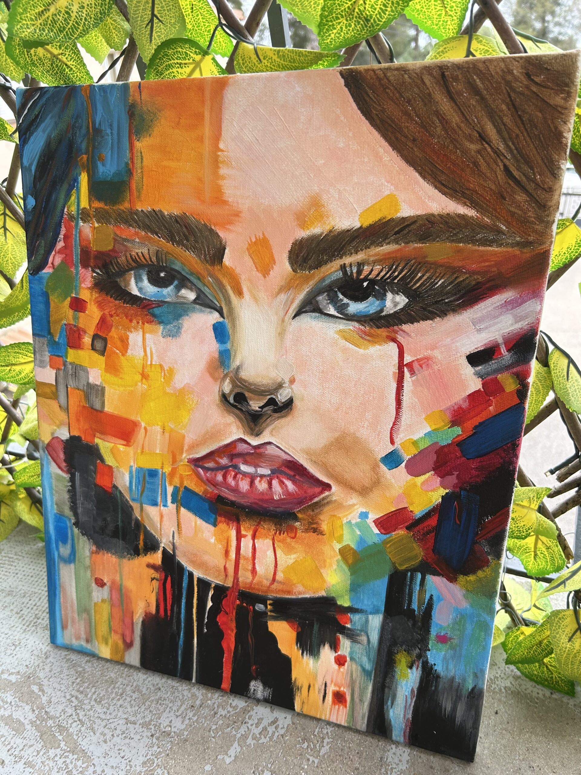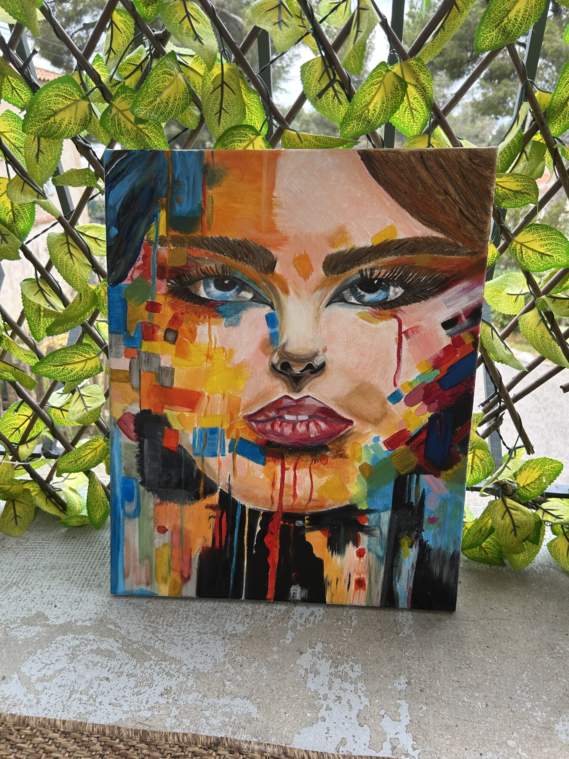 Laissez-vous séduire par ce portrait de femme réalisé à la peinture à l’huile, une œuvre originale au style abstrait et moderne.